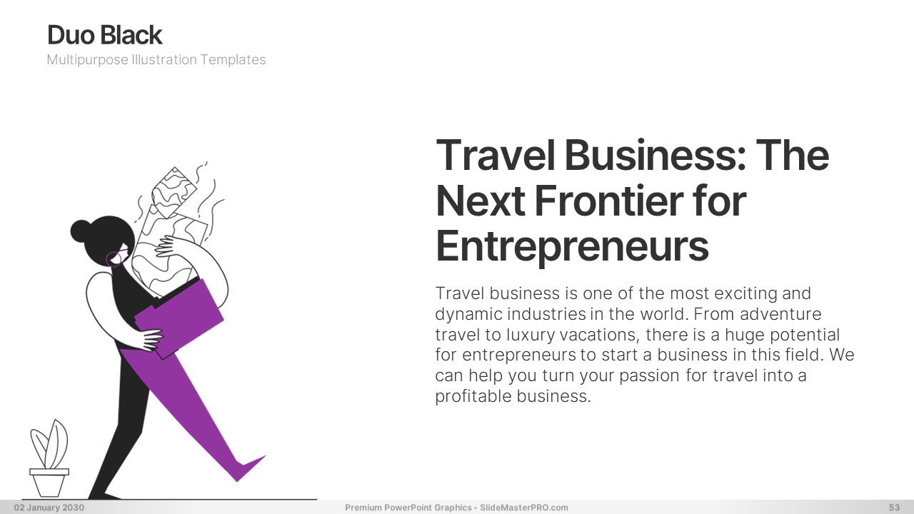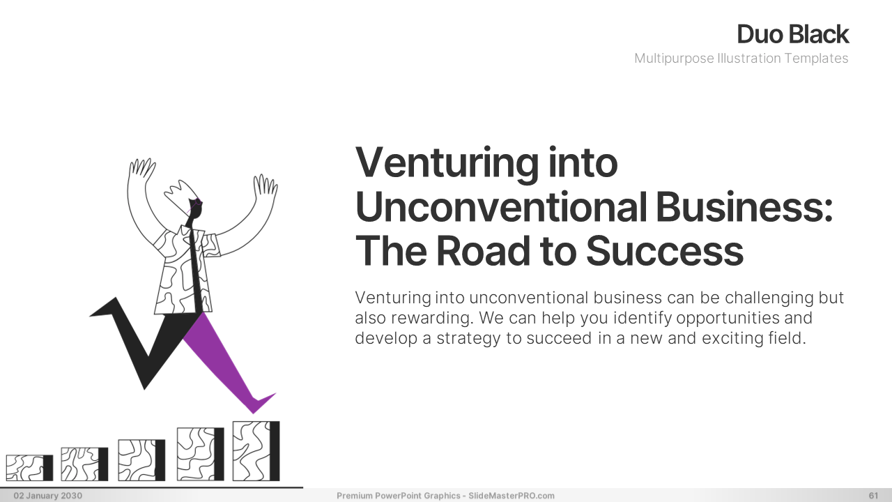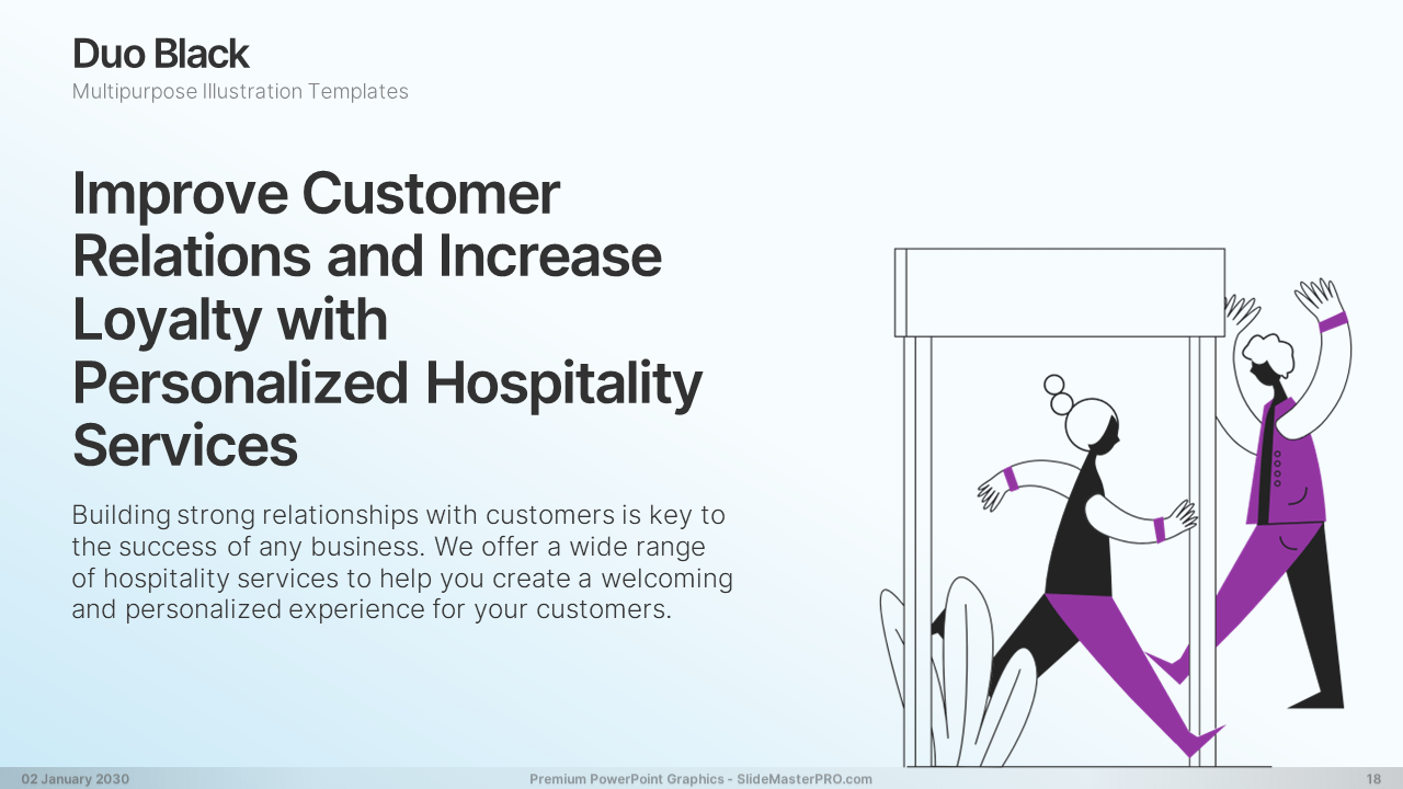 Are you tired of boring and uninspired presentations? Look no further than our PowerPoint graphic illustration templates. Featuring simple duotone black line illustrations, our templates are designed to impress your audience with their creativity and versatility. Covering a wide range of topics including shopping, management, travel, jobs, communication, connecting people, hobbies, and more, our templates are perfect for multipurpose use. Whether you’re a business professional, educator, or student, our templates can help elevate your presentations to the next level. With their clean and modern design, our templates will captivate your audience and effectively communicate your message. Don’t settle for mediocrity – upgrade your presentations with our creative and versatile templates today!